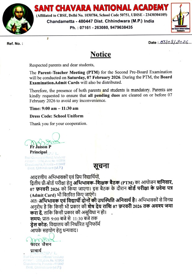 Chandametta P. O. , Chhindwara | Affiliated to CBSE, Delhi (No.1030784)