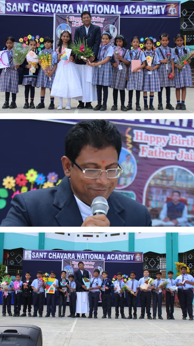Rev. Fr. Saju K. felicitated the Principal, acknowledging his dedication, service, and leadership. Students showcased performances including Taare Gin Gin and Janabe Aali, adding colour and energy to the celebration. Birthday wishes were also extended with affection and joy.
