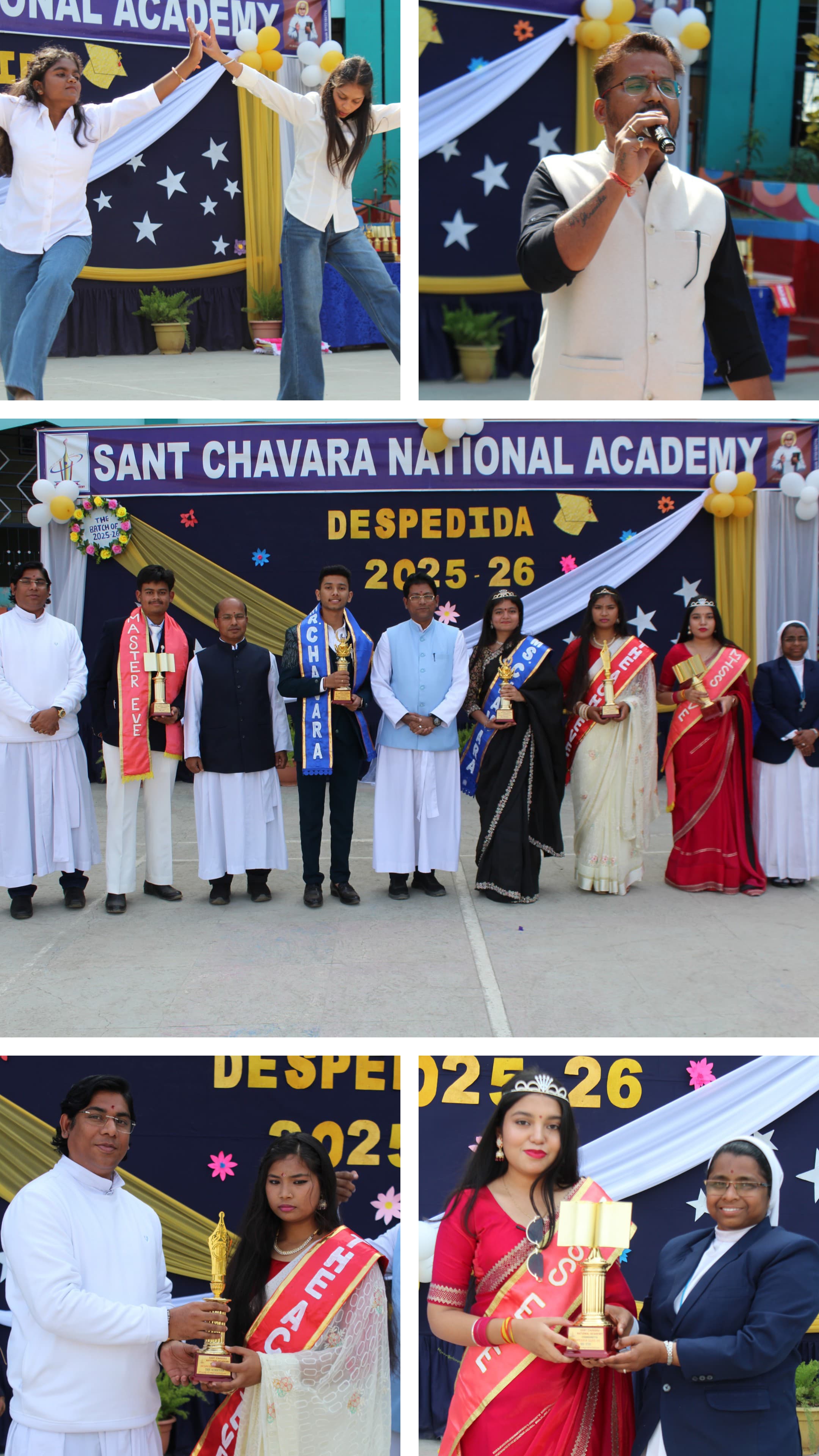 Principal Fr. Jason blessed the students and wished them a bright and successful future. On this occasion, Varun Malviya and Astha Gupta were selected as Mr. and Miss Chavara, while Bhumi Tunkar and Vatsalya Shelke were honoured with the titles of Mr. and Miss Event. Sadhna Dheriya was presented with the Best achiever award.