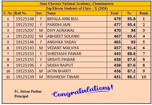 Top Eleven Students of Class - X 2026 (First Board Exam)