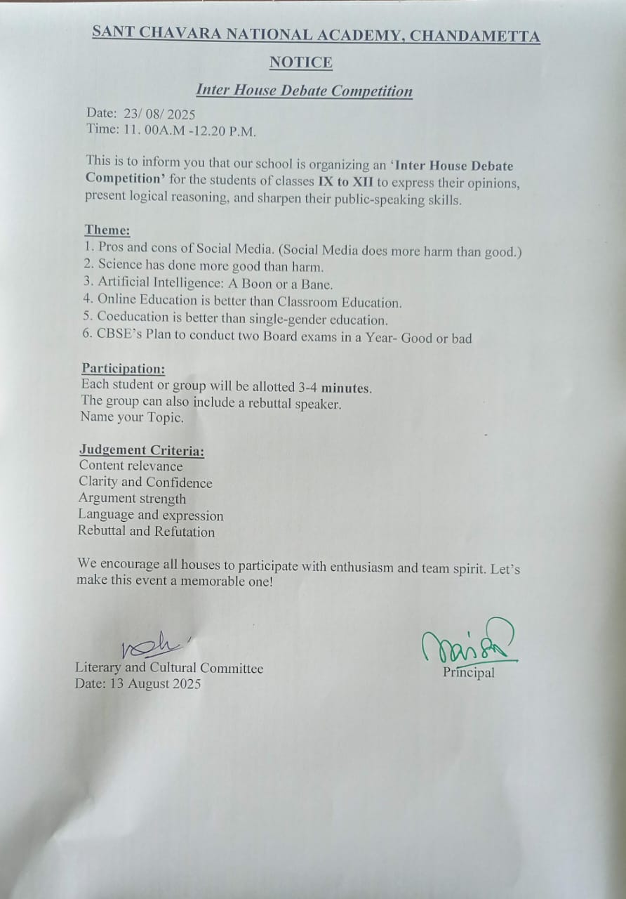 Inter House Debate Competition