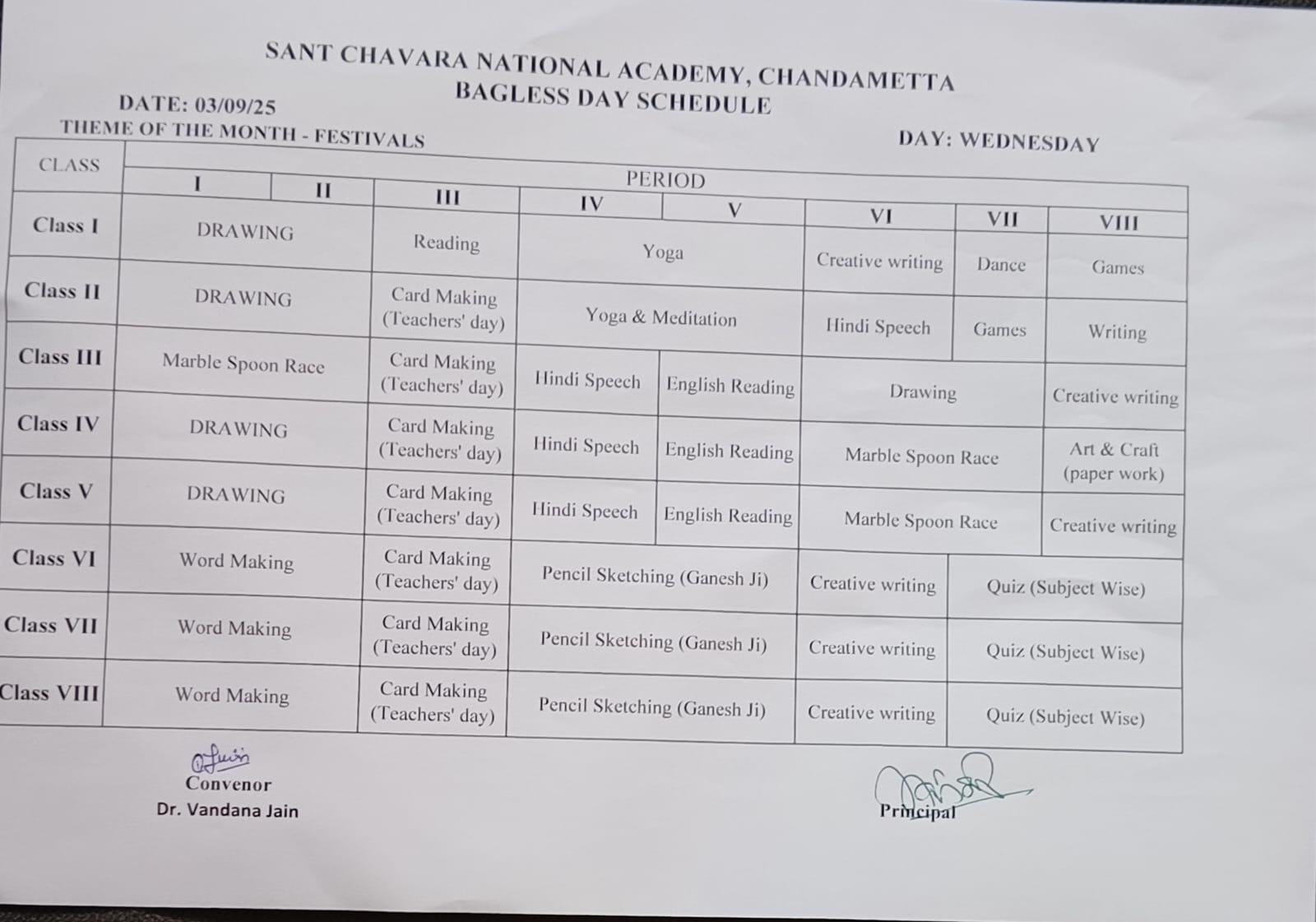 Time Table for Term II (Classes I-V), Half Yearly Examination (Classes VI-VIII) and Mid-Term Examination (Classes IX-XII) 2025-26